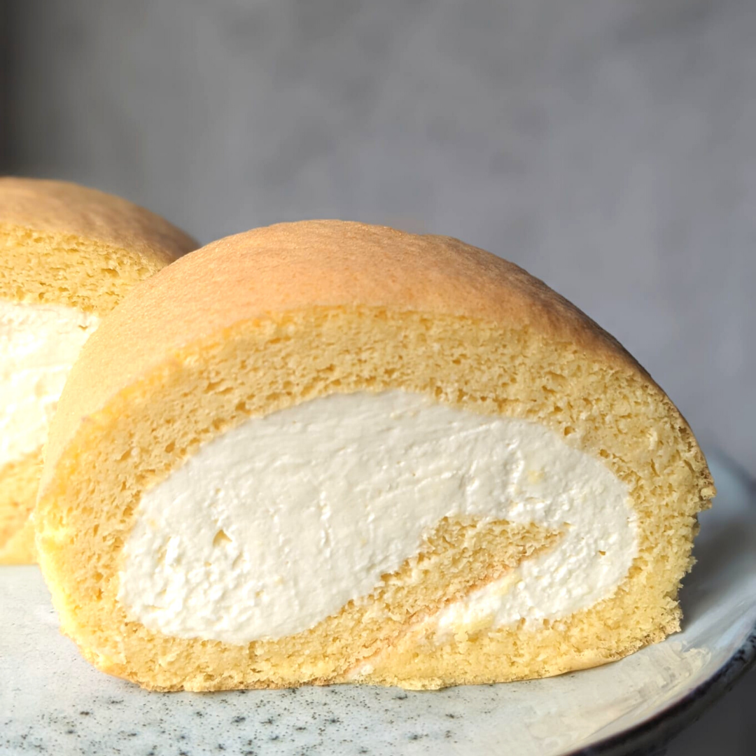 A light vanilla swiss roll filled with a generous amount of soft fresh cream. No flour, gluten or sugar!